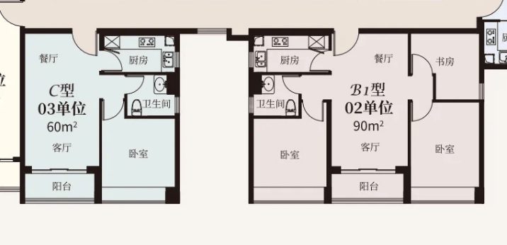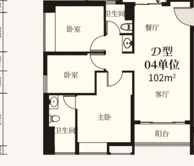 另外两个大户型,102平三房和122平四房,则相对要好不少,但也只能是凑合。