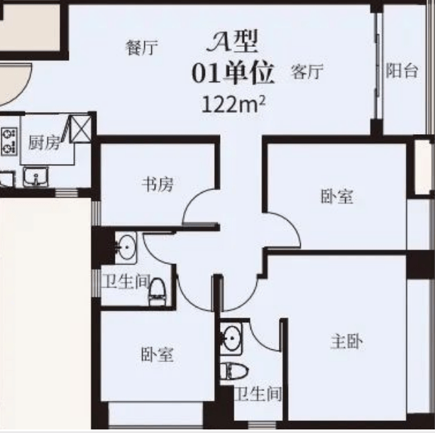 122平四房,可以做到动静分离、双卫生间、入户空间,更大阳台,不过次卧采光会被主卧挡住,而且大户型上车门槛也会更高。