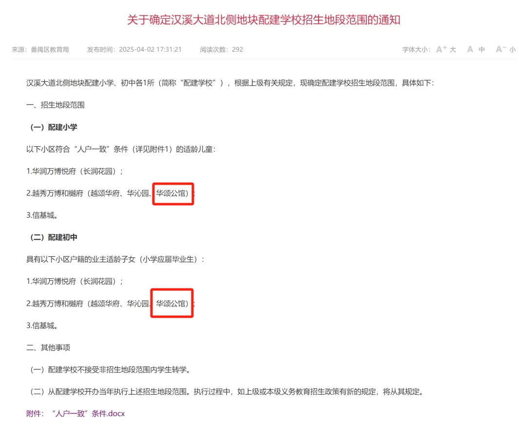 而万博和樾府的人才房,同二期组团一样也叫华颂公馆,在配建学校公告中,也是招生的第一梯队。