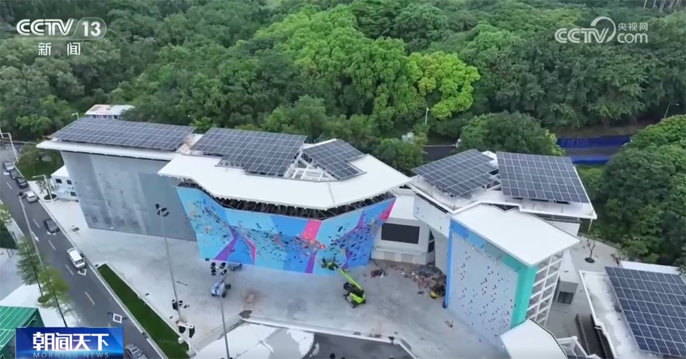 你听说过零碳场馆吗?广州大学城体育中心的这个攀岩馆就是“全国首个零碳场馆改造项目”,也是全运会攀岩项目的比赛场地,仅仅通过场馆屋面上的光伏板,它的年发电就能达到32万多度,不仅做到自给自足,还有剩余电量供给旁边的自行车馆。本届全运会,广州有30个场馆升级焕新,改造后的场馆也将更绿色更智能,赛后,各场馆将向公众全面开放,实现全民共享。