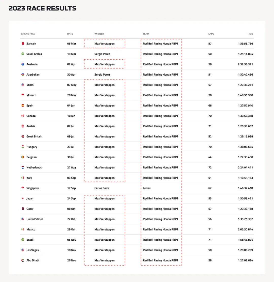 由于 F1(Formula 1)的底层要求是,所有车队基于同一套技术规则要求设计赛车,相当于所有人同时解一道方程(Formula),比的就是谁能找到最优解,答案越接近最优解,赛车就越快,但是题目出久了,先摸索到方向的车队就会越来越快,逐渐拉大和其他人的差距(因为其他人可能还需要不断试错),导致比赛完全失去悬念。例如 2023 年红牛车队在全年的比赛中,仅仅输了一场,在其他比赛中均以断崖式的领先获得冠军。