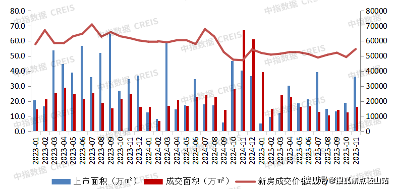 根据中指数据库监测,11月1日至26日,深圳新房住宅成交2038套/21.43万平方米,新批准上市商品住宅共计2463套/36.44万平方米。11月深圳新房市场供应与成交均处低位,但环比均小幅回升,显示市场底部企稳迹象。豪宅市场表现亮眼,深圳湾·澐玺开盘单日销售额达130亿元,创2025年全国单盘销售纪录。刚需市场以价换量保持稳定,部分项目去化亮眼,如深铁珑境II云赋首日去化超60%。区域上龙岗、龙华、宝安贡献主要成交,南山推出安居型商品房且申购条件放宽,吸引刚需及人才关注。9·29新政效果持续显现,市场信心明显提升,但仍处于弱复苏阶段,市场整体仍显谨慎。11月深圳新开盘项目普遍采用8.5-9.5折综合折扣,部分项目低至8.3折。主流促销形式为冻资+开盘+签约三重折扣叠加,辅以首付分期、赠送精装等增值服务。11月深圳新房均价受高端项目拉动维持稳定,市场正处于调整期并逐步寻找支撑点,12月将迎来新一波推盘高峰,顶豪与刚需盘齐发,叠加房企年终冲刺促销,成交规模或进一步攀升。