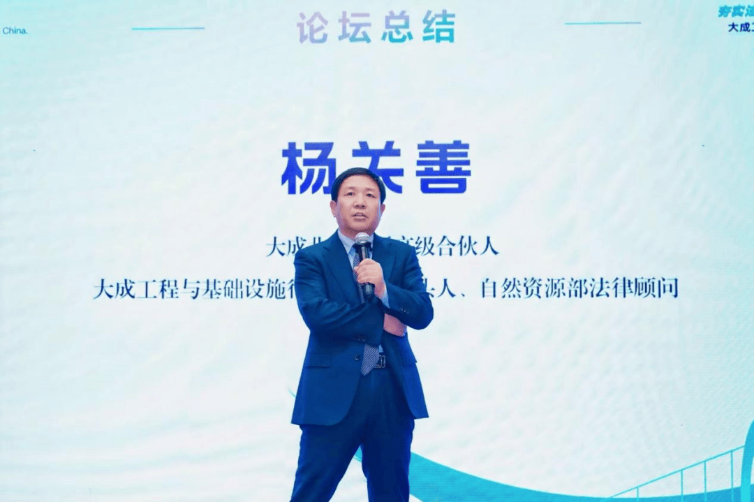 最后,行委会牵头人、大成北京总所高级合伙人、自然资源部法律顾问杨关善律师对本次活动作了总结发言。杨律师高度评价了大成律师事务所在服务城市高质量发展中展现的专业优势,指出论坛充分展示了大成拥有一批深谙行业趋势、洞悉产业整合与变革的“行业律师”。唯有坚守法律专业的核心定位,为客户提供专业法律服务才能真正赢得客户信任。大成律师事务所愿以专业的法治力量为城市的高质量发展保驾护航,夯实高质量发展的根基。杨律师欢迎更多的学者、专家、企业界朋友们和大成同仁关注并参与行委会的系列活动,实现共同发展。