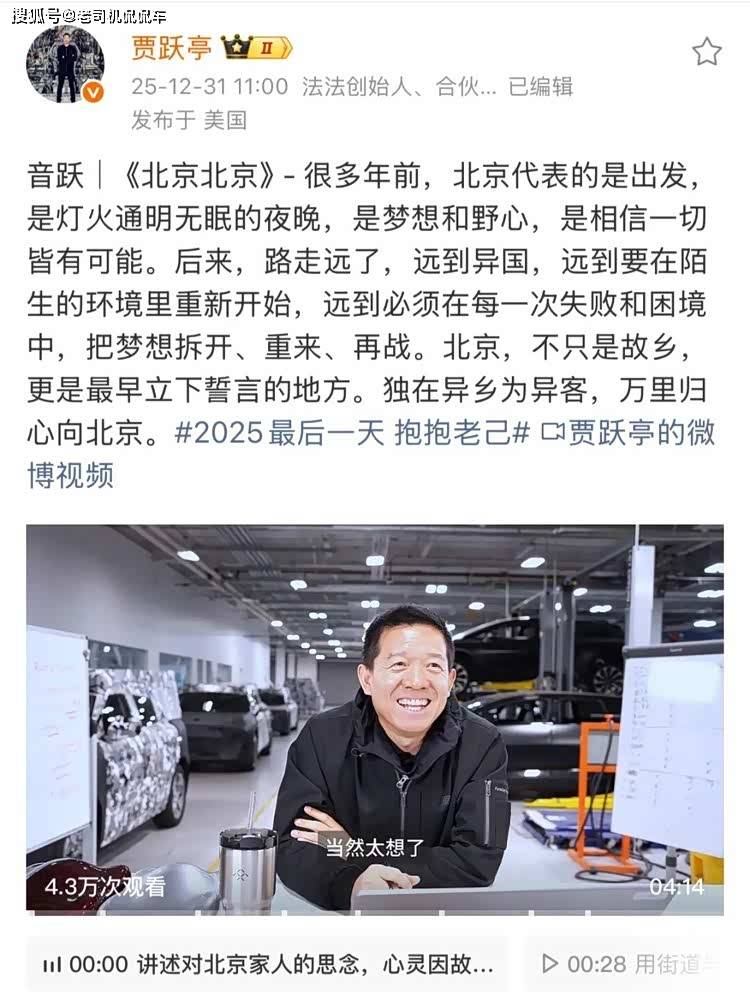 全网都在笑他 “下周回国” ,笑他欠债跑路成,但是贾跃亭却没在群嘲之中躺平,还在不断折腾还债;在海外把技术、市场、新赛道一个个落地。或许争议仍在,但这份在群嘲里死磕硬科技、跨赛道追风口的坚持,还真不是谁都能做到的 —— 你可以笑他曾经的激进,但没法否认,他从未停下踩风口的脚步,也没有否认,他对于家乡的思念和热忱,贾跃亭说他想家了,今年回国,你愿意再相信他一次吗?返回搜狐,查看更多