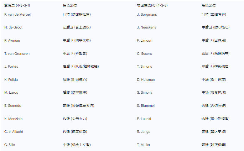 数据表明,登博思是一支更倾向于掌控球权的球队,而埃因霍温FC则更擅长于利用对手进攻后的空档进行高效反击。
