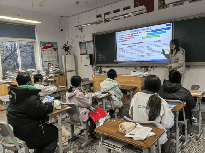 最后,两位成员聚焦学弟学妹关注的升学与就业问题,分享学校的专业建设成果,以及毕业生可观的升学率和优质的就业去向,不少毕业生进入国企、知名企业或考取双一流高校继续深造。同时介绍学校丰富的校园活动、科创竞赛平台,让同学们了解到在浙江海洋大学不仅能收获知识,更能锻炼实践与创新能力,实现全方位成长。