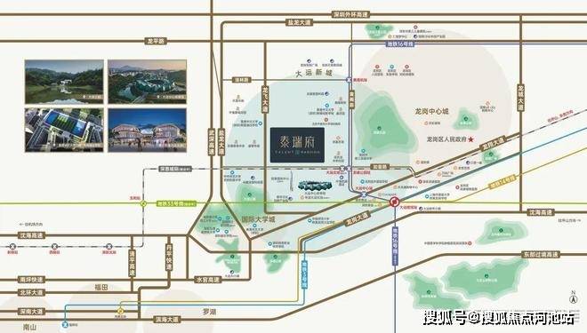 地铁:紧邻地铁16号线站大运枢纽。未来地铁深惠城际(建设中)在此交汇,4站深圳北枢纽、5站西丽、8站前海;
