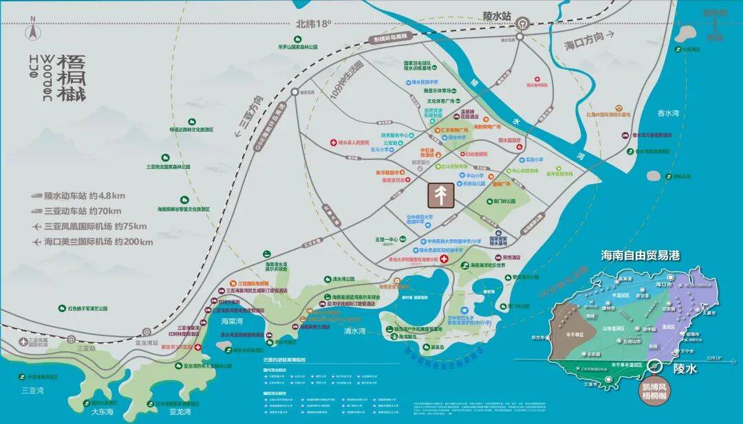 距G98高速黎安互通约4公里,距陵水动车站约4.8公里,距离三亚凤凰机场约75公里。