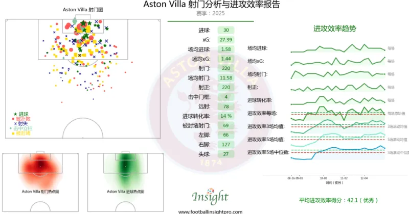 阿斯顿维拉这赛季的表现是真亮眼,现在稳居积分榜第三,妥妥的欧冠区水平。尤其是主场战力堪称恐怖,近6个主场豪取全胜,进了13个球只丢3个,拿分率在英超主场里排第一,最近10个主场更是保持不败,气势正盛。球队阵容厚度也够,中场蒂勒曼斯的调度很稳,虽然有5名球员伤病,但核心框架没受影响,进攻端近期连续进球,火力保持得不错。